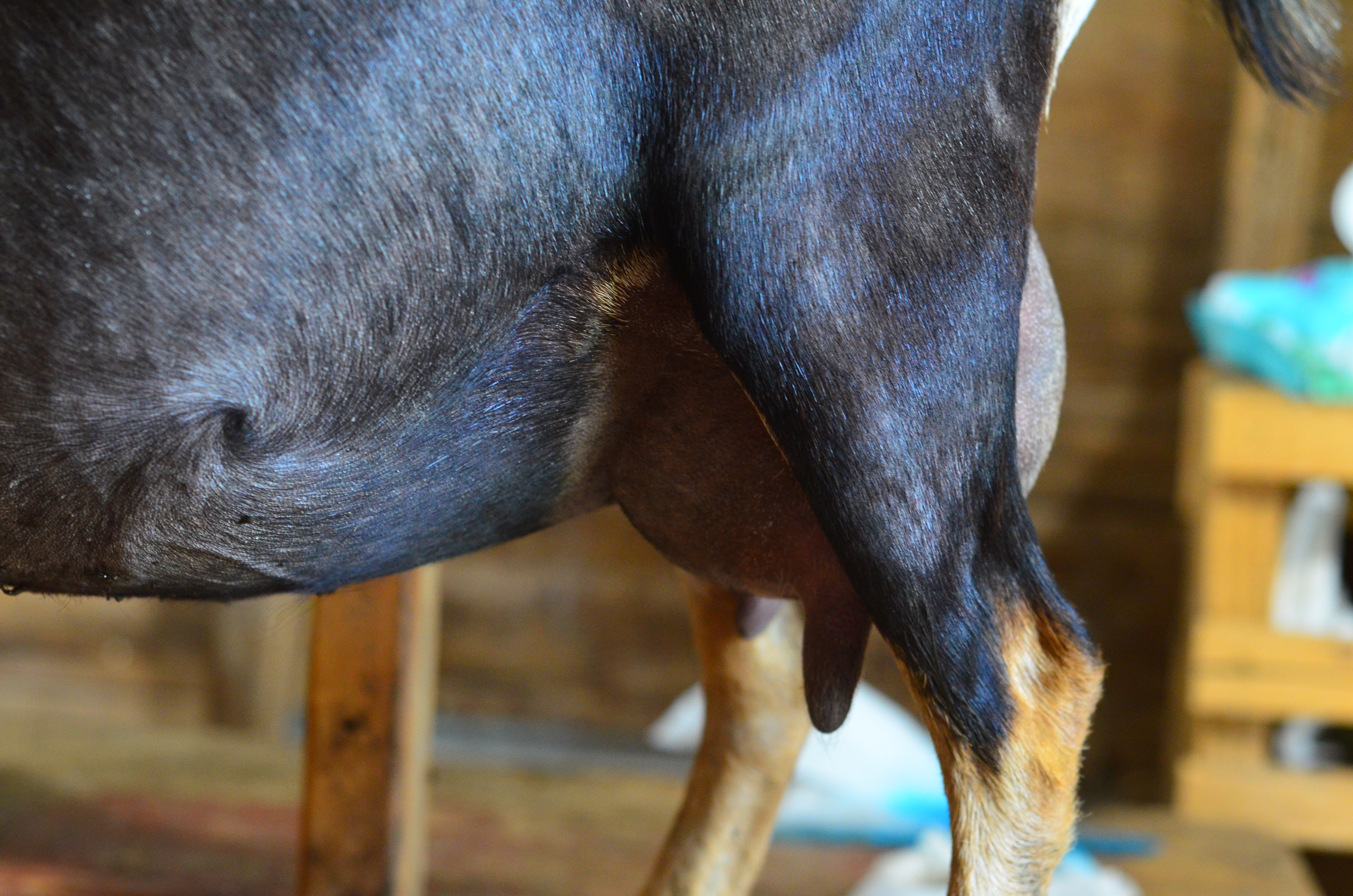 Swiss Miss is a beautiful doe with a lot of presence and dairy strength. She is a nice balance of width and femininity. Her udder is looking promising for a yearling FF, and she milks easily, with medium sized teats and soft udder texture.
