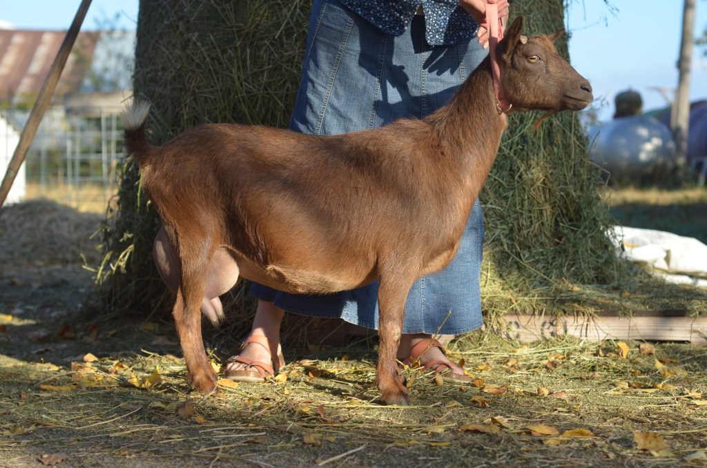 Daisy spent about a year away from our farm, but we were able to bring her back in the spring of 2023. Full sister to “Plum Bush R Ginger“, Daisy freshened in October 2023 with twin doelings and is proving to be a great little milk producer. Sired by Swiftwind Rumplestitlskin, her dam is Sleepytime Goat’s Butterscotch. Daisy has medium size teats and a soft, easy to milk udder. She’s such a good girl on the milk stand too, making her a doe that is a pleasure to hand milk.