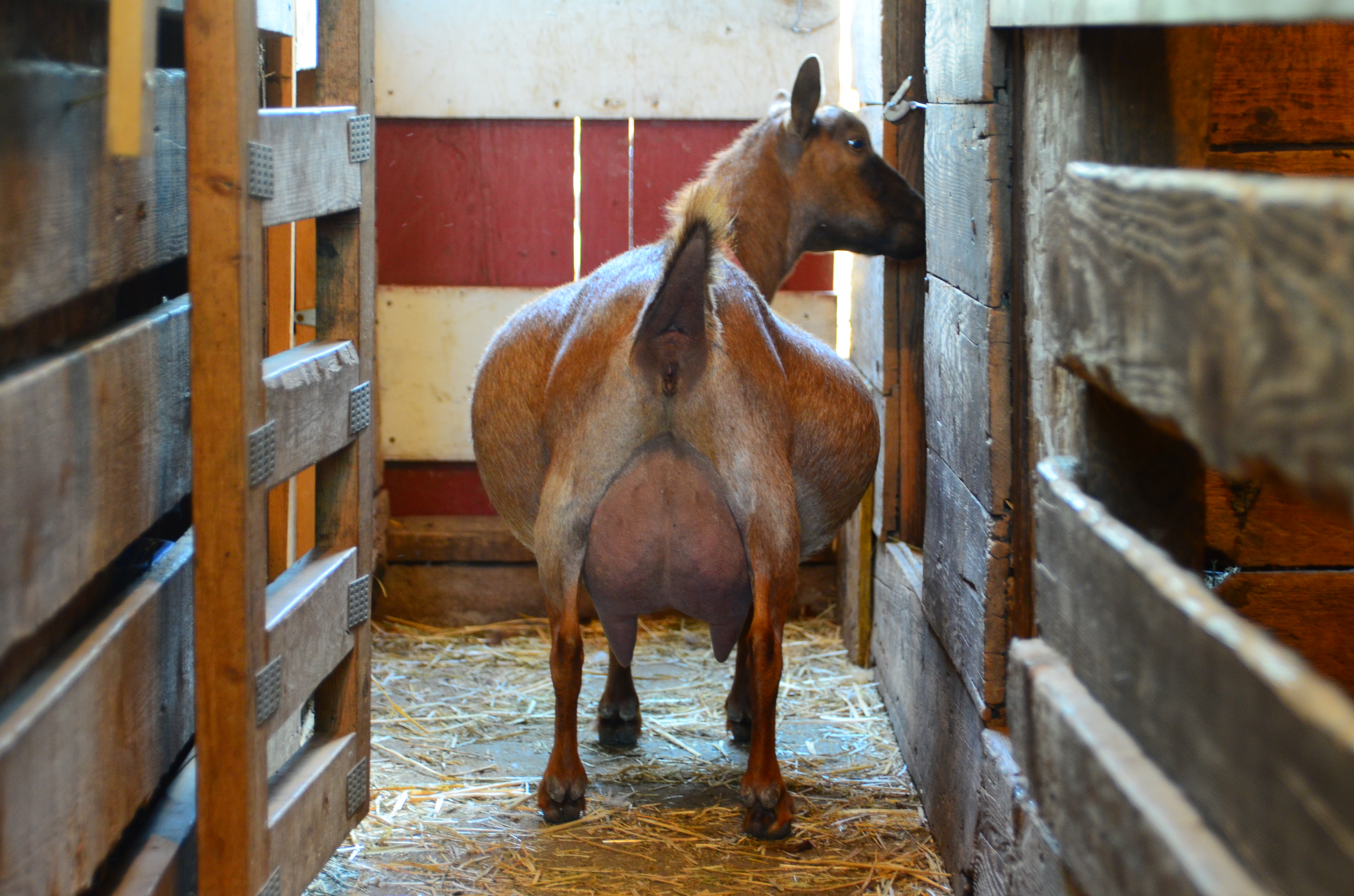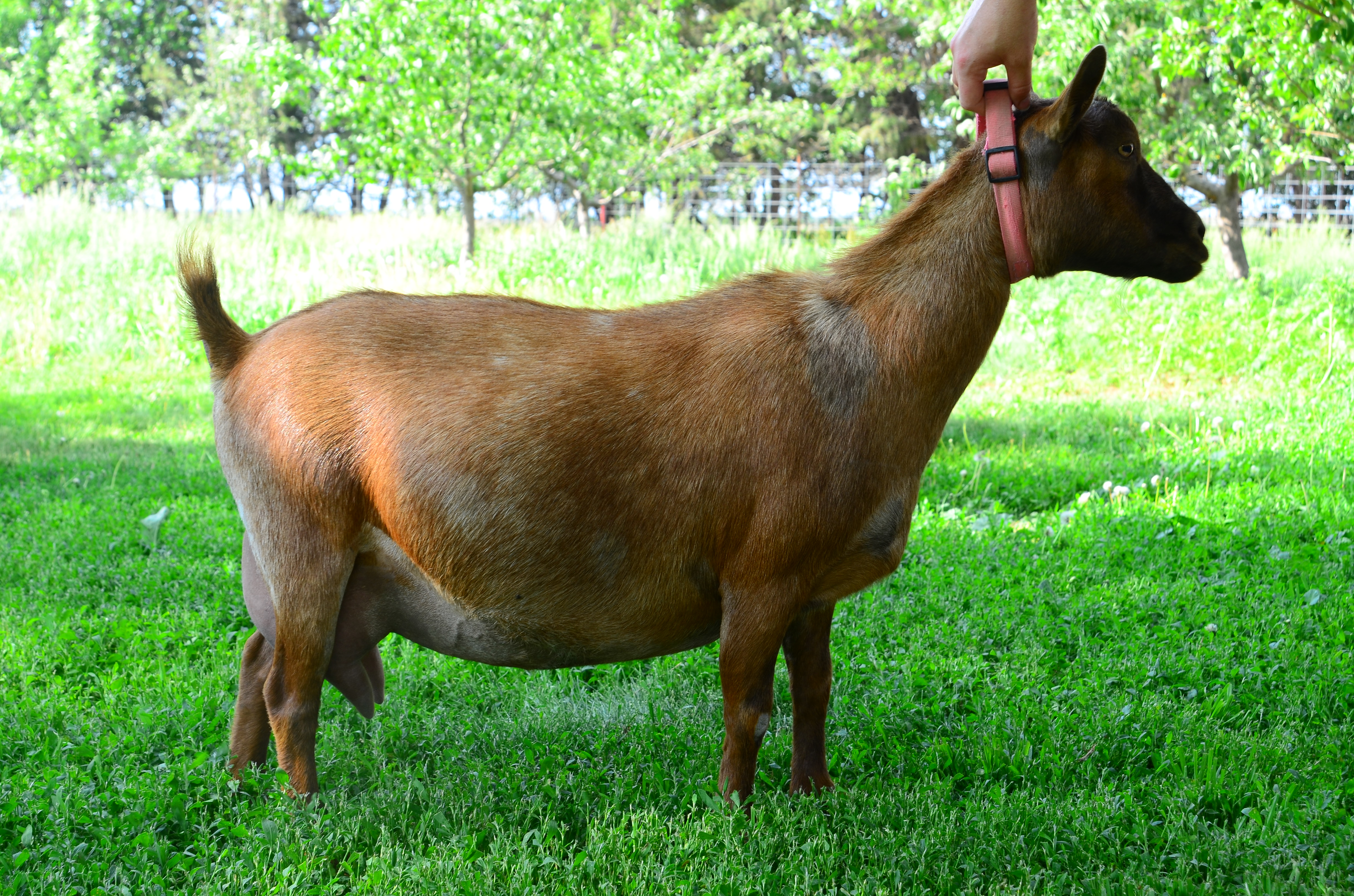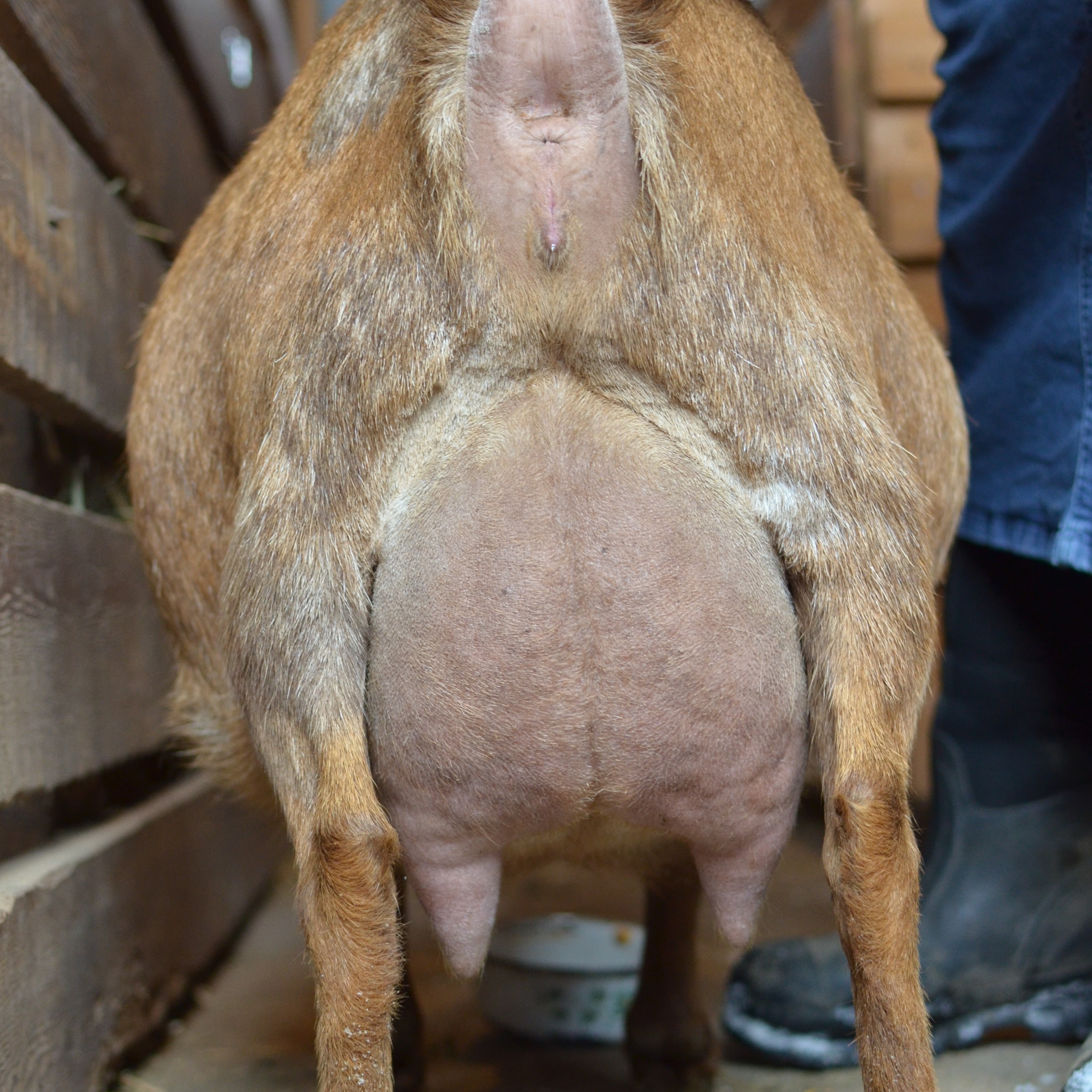 Butterscotch is the herd queen and has proven to be a steady milk producer. She has many strengths in her mammary including large teats, strong medial and good attachments. If I were to nitpick, I could say that I think she should have better rear udder height and larger orifices.